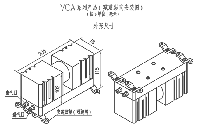1.VCA系列 微型真空泵-横向安装外形尺寸图(以下图示单位:mm)