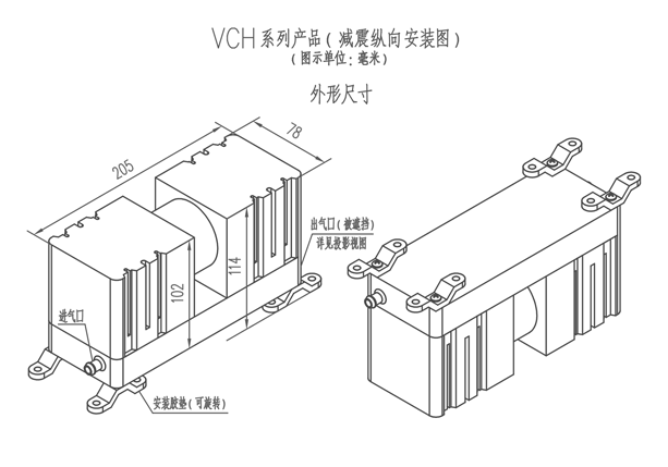 2.VCH系列 微型真空泵-纵向安装外形尺寸图(以下图示单位:mm)