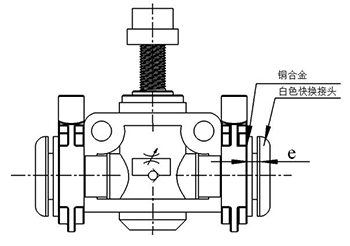 方法:用力按下调节阀左右两端的白色快换接头至铜合金部分使e等于零,然后拔出左右两端直通管或三通管,拔出完成后松开白色部分使e回到图示位置,即可实现拆卸和更换。